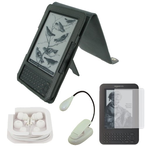 rooCase 4n1 Convertible (Grey Graphite) Leather Case with 3-Way Adjustable Stand / LED Clip-On Book Light / Earbud / Screen Protector for Amazon Kindle Wireless Reading Device with 6" Display 3G + Wi-Fi (3rd Generation and Latest Generation) Review