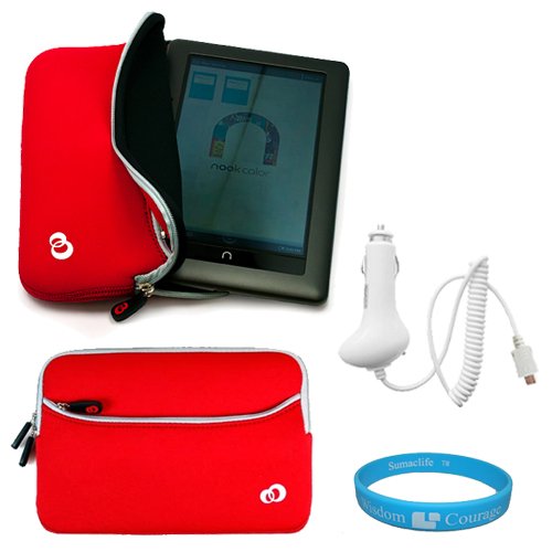 Neoprene Protective Glove Cover Sleeve for Barnes and Noble Nook Color Wireless Reading Device Wi-Fi 7 inch LCD Display Screen + Rapid Car Charger + SumacLife TM Wisdom Courage Wristband Review