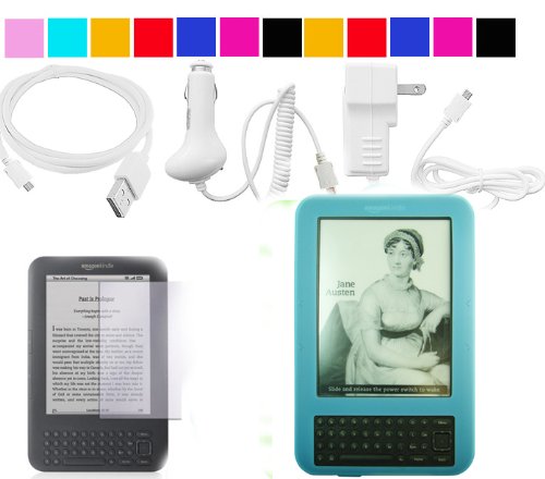 Amazon Kindle 3 WIFI Combo: New Silicone Skin for new kindle 3 Kindle Wireless Reading Device 3G Wi-Fi 6" Latest Generation + Kindle 6 Inch Srcreen Protector + Kindle3 Home Wall Charger + Kindle 6 Inches Car Charger + Kindle Micro USB Data Cable, LightBlue Review