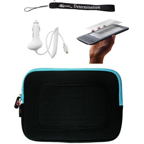 Blue/Black Sleeve with Interior Fur Padding for Amazon Kindle Wireless Reading Device, Wi-Fi, 6" Display 3rd Generation + Includes a Anti Glare Screen Protector + Includes a Rapid Travel Car Charger Review
